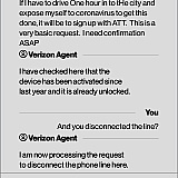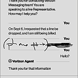 It took me two very long and unnecessarily ‘confusing' sessions with Verizon chat online to drop a line from my account. The rep acted like they did not understand what I was asking, referring to other issues, and would place me on hold for lengthy periods of time while ‘researching my account' only to have the line remain on my next bill. Today this happened all over again. Spent over twenty minutes of cat and mouse. It required my mention of feeling forced to go to a physical Verizon location with a switch to AT&T for the second rep to magically understand my request, immediately delivering with the desired result. This is a manipulative, and dishonest way to perform a simple act of business and I will leave the company after 18 years if this behavior continues.