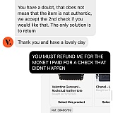 I cannot do that, as I'm now going away for 2 months. I've asked for a refund of the £15 in authentication fee (bc clearly the authentication was a fraud). I was told there are no refunds (funnily enough, if the bag is found not to match, there will be refund), but not for a service that I paid for and wasn't provided with.