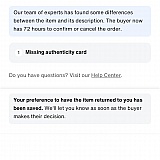 When it was sold, i sent the bag with printed authentication certificate! When VC hub got it, they sent me a report that it missing authentication card, it shouldn't be card! I never mentioned the authentication card in the description when i listed it. Now the seller has 72 hours to accept or cancel the order! Certification is not a card! Never will use the platform again until they will solve the problem! I am very disappointed!