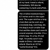 Iam very dissatisfied with the back and forth of received emails from this company I've sent numerous emails and also requests through the HELP department enclosing thee item#******* and reference#******* I never entailed such threating limited conditions for returning an item customer satisfaction is law. I cannot even get the chained attached handle past my wrist