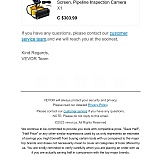Order number **************987 or ticket number ************** is a Vevor 65.6 ft sewer camera package that has been unusable (damaged or Dead On Arrival - DOA) since the time FedEx (tracking number **************) delivered it to me on September 27,2023. Vevor withdrew CAD 303.99 from my visa card after I made online purchase, but, in return, Vevor sent me garbage. As garbage has no value ($ 0), Vevor currently owes me CAD 303.99. I am still struggling to get my money back immediately either by money deposit into my visa card or by shipment to me of another new Vevor 65.6 ft sewer camera package. In addition, Vevor's customer service at *******@vevor.ca only contacts me once a day by email, apparently because they are overwhelmed by similar technical problems from other customers. In my opinion, it is time to change Vevor's slogan to Defective Tools - Half Price.