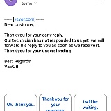 Hope you are well. We're really sorry for what you have experienced on Vevor.