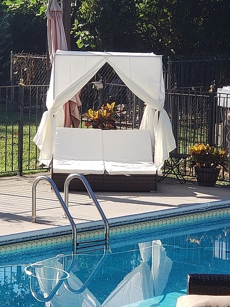 Absolutely love the enclosed swinging bench/bed! Definitely a great addition to my fire pit!