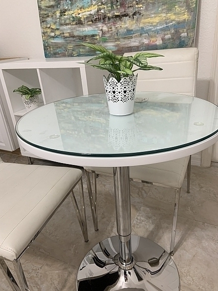 Easy to assemble, and looks modern, clean and it really seats 4, with 6 being a little difficult as chair feet collide with the table frame. It works for me just fine: the table looks good, is sturdy and easy to keep clean.
