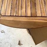 Needed a TV stand that fits my love of reclaimed wood. The half-barrell "coffee table" is too small for a coffee table, but perfect for my TV.