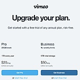Vimeo is good for storing my videos but when I wnted to upgrade my plan, and there was no simple way to do this offered on the platform, I spent a half day researching and following thier directions, and found they offered one set of plans and prices on my phone access and another set on my laptap access. Both were impossible to activate.