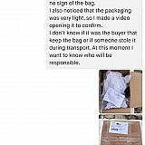 When I got the package back it was full of rubbish and no bag inside! The packaging seemed very light when I went to pick it up and it had a cut on the side so I made a video of opening it to have a proof.
