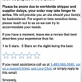Ordered item as listed on their website as being in stock as I was in a pinch and needed it asap. They take my money and send me a reply stating it may take awhile to get my part because it ships from vivids supplier.