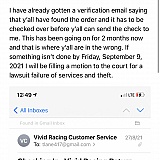 Just an update, I got a response after I made a complaint to the Bureau of Consumer Protection | Federal Trade Commission in August 2021 after moving to new city. Vivid Racing refused to update my shipping address even after months of waiting and me warning them I was moving on a specific day which I had no control over the time my lease was up. This meant if they sent the parts (which they never did) they would go to the wrong place and I might never get anything back in terms of a refund or my parts.
