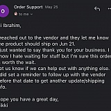 Never sent me update on my order (placed 2 months ago, June 1,2021)