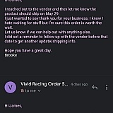 Super disappointed. Got some leafs for my truck ended up being broken wrote to jay (who now doesn't work there) on 5/11 I let him know a leaf was broken pictures and info sent. It took so long to even get an answer the shop had to modify my leaf to get it out of the shop so they could continue business and I could have a working truck. After multiple emails I got emails that now jay is not there and they need info. They wanted to know how it was shipped and packaged over a month after the fact. I only gave pic of the broken leaf but also told them leafs don't get packed they send them with a tag. For my final response of today that is 6/22 I was told since the shop made them work and modified them there was nothing they could do for me. This will be the last time I use vivid. The fact your response time are over a month, you want pictures of the Product that of which is weeks after the fact and you do nothing to accept responsibility for your product and shipping( also not knowing how you ship items) is troubling however after spending thousands of dollars I know to go else where to a company who makes things right and takes care of people. So sad cause I had such a good buying experience with jay but now I know and it's good to know when a company does nothing for its buyers.