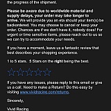 I had to email the Vivid Racing after over 15 days of inactivity. Afterwards, my part was located in the warehouse and finally received on December 20, when it was originally ordered in December 01. I don't really feel like they appreciated me as a customer.