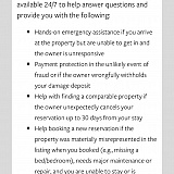 There was ongoing construction at our condo and we could not stay there. When I contacted VRBO their agent's immediate response was that they would not help, we should contact the owner (which we had already done), and that we could give a bad rating. That's it. We had expected, based on the VRBO website, that they would help find an alternate place for us. They did not. They never responded to emails even though a complaint case # had been assigned. So the fee we paid was for the owner to market their condo, and for VRBO to process the credit card payment. I will never rent through VRBO again.