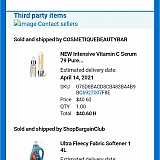 This site is crap, don't buy from there. My mother is a senor and purchased three items. Two of them were sold by a third party. This is dumb, one item is Fleecy which is sold by Walmart in the store. I was charged $15.00 for shipping on a 4L liquid jug of softener. The little box of face serum shipping was $43.10. This doesn't make sense. We asked for the $15.00 back in shipping charges. We heard no five times over a recorded conversation.