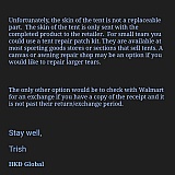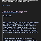 I have a tent that I called about the stitching came apart at the top and the tent collapsed on me. They told me the poles have a warranty but not the fabric. Below is the photos of the conversation. What a joke walmart you guys are horrible. Don't but from them period.