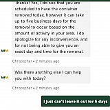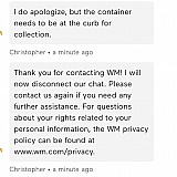 Update… chatted today to make sure the empty bin will be picked up like they said and guess what… chat ended, their solution to everything hang up and end the chat, photo attached of the chat