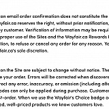I am sure Amazon, Best Buy, Zulily, etc. have the same terms of use. However, they have not abused the terms as Wayfair has. The only reason the price of first 2 rugs I have ordered was immediately corrected on the site was because I asked/threatened them to do so. The third rug (photo attached) is still mislabelled on the site to be $900 less than the actual cost. I am sure if I ordered it, it will be cancelled also.