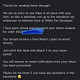 I placed an order recently & accidentally chose the wrong shipping process. White fox got back to me so fast & updated my shipping information very easily! Great store & even better service! Thank you again!