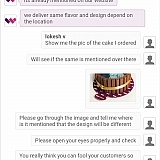 The worst cake sight ever. I have a premium cake however ended up getting a totally different cake. Their customer service is pathetic. I took me 4 days to reach out to them and then they ask me if the cake is consumed. The customer rep themselves told that they do not take any guarantee on the design of the cake without any such disclaimer mentioned on the cake. They also do not deliver the add ons and when I asked for a refund on my card they give you a refund on the wallet. After all this do they really expect me to order a cake from them. Check the below screenshot on the customer rep responds.