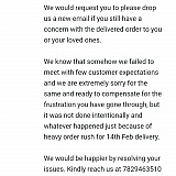 I ordered valentine's gift to my wife and paid extra to amount to deliver 14/02 with delivery slot 10am to 2pm, they didn't deliver on time, I tried to send email, what's app, tried to contact helpline, there is no response from any of these
