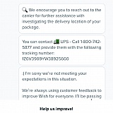 I tell WISH these details and they say the same thing - issue resolved, no refund, contact UPS! Even after I give them this information! What a SCAM!