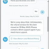 On 05th March I purchased masks 100 pcs from wish. Price $22 plus the delivery fee of $13 but never arrive till today. I contacted the support service but the system said I need to wait till 20th of May. On 16th of May I cancelled the deal but the system said "the unfortunately, the refund window for this item closed on 15 May 2020". Wish is just a scam company. I regretted buying from Wish