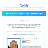 Answer: Wish your company charged my checking account $114.75, I have been trying to contact your company several times and get no respond form you by email, tried that fake phone number that's a joke... Where is my orders or my refund for 114.75 your company charged out of my checking account. I am going to have my Bank and credit card company look into this matter... PLEASE RESPOND.(shame on your poor services) I have ordered hundreds of dollars form WISH I can't say it enough how disappointed I am in wish, I ordered several items that was not right I got in touch with wish company about the the mistake right away I was told it was to late to do any thing about the items. I ordered two black king size comforter you sent me two black satin king size sheet set, I ordered black satin two piece medium size sleep ware you sent me a size small, I ordered a medium black suit jacket, you sent me a size small. I have ordered to much form your company for you all to treat me this way..