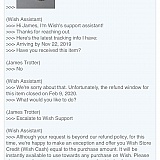 I had ordered some items. I just received notifications that they were being refunded in "wish cash" (store credit). They faked a conversation with my account via support, and show me asking for a refund in store credit. When I tried to go through (mobile app) support, it's useless because you have pre-determined options to ask their bot, and when you try to type feedback a keyboard doesn't pop up so you can't actually give negative feedback. NOT ONLY THAT, but they said TO THEMSELVES that the refund window had already closed, when THEY said it closes in February. It had already closed a month from now!? And I don't know how they could possibly deliver overnight from China when it takes a month to arrive. Just read the attachment.