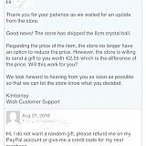 PS my last purchase was supposed to arrive the following Wednesday and for some reason it changed to Thursday they're supposed to come today that's their part of the bargain I paid as soon as I pressed the button that was part of mine. I hope there is something that you can do...