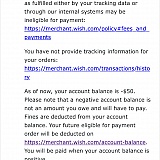 I HAVE FULFILLED QUITE A FEW ORDERS ON WISH for which I did get proof of postage but did not ship with tracking because it's too expensive to ship outside of the UK with a tracking number which would price my product out of the marketplace. A fact I've explained to wish. They are now refusing to pay me 4 months later saying to avoid this situation you need to post with tracking! Is this a joke? I am out of pocket both for my product and postage and wish has refused to pay me, it's beggars belief that a company can wield such power! DO NOT USE WISH!