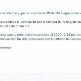 I bought 5 products to WISH in wish.com on the 5 of Dic. And I waited long time for the delivering and the products never arrived, then I asked for my refund and they say that I have to wait 5 more days to ensure the shipping wasn't delivered, then they told me they were going to refund, then the refund never appear in my bank account, then I complained and they told me I should wait for another 14 days because the banks sometimes delay in refund the money, but the money wasn't refunded after the 14 days, and then I ask for the tracking key of the transaction of the bank transference and they never provided any information about that. They are a bunch of thieves! There should be some way to block this website and to fine and put in jail all this persons!