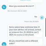 Not only that, but when I went back to check on my order because it was taking weeks to arrive, I found that the primary item I had ordered had not even been dispatched, when I contacted support they didn't bother speaking to me or even give me that option (presumably because they knew I would complain) so just fobbed me off with their automatic robot assistant, which provided no help at all, and told me the item was out of stock and I would have to order an alternative item at no extra cost, they did not offer me a refund but that is what I will be getting from them. At no point did Wish bother to contact me about the problem with my order, pressumably hoping I would just forget about it and let them keep my money for nothing! Greedy, lying, dishonest scumbags. AVOID AT ALL COSTS.