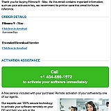 Behind all of the software sold or offered as a "free" download is a behind-the-scenes scam. I bought the Filmora9 video editor for MAC from them and was loving it. Very nice program. But I could not export any video files after I was finished editing. The problem was that I was unable to register the software in order to get full use of it. The "customer service" phone number actually wound up being scam artists trying to convince me that my computer was in terrible shape and they could "fix" it for a fee. I was told that the Filmora software could not run on my laptop because I had too many errors on it. One guy told me I didn't have enough memory. I have 16GB of DDR3. He said I didn't have a large enough hard drive. I have 1TB of SSD and 2TB on Apple's iCloud. He said my computer was "too old" and that the serial number had expired. Seriously? I have a 2.8 GHz Quad-Core Intel Core i7. It's not a gaming machine, but I mostly do audio and video editing as a hobby so my machine is more than adequate. They were using back-door access to my system so I shut it down and changed my laptop password before they could give me their pitch for sending them money. I have included my receipt showing the number to call to "activate" my purchase.
