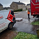 Our tiler, who is an older guy, was unable to assist either, although his van was stuck in drive as the pallet was left in the middle of the road. So his fate was the same as our neighbours, blocked in the flooring pallet