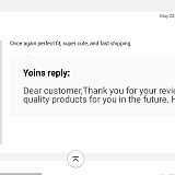 I love the styles on YOINS site. I think I order from them at least 2x/month. Items arrive so much faster than expected. 99% of the items I receive fit incredibly perfect and look great on. If I need to return or exchange anything the process is relatively easy. If it seems a return application is not being processed The Chat feature is super helpful. I did wait 7 days for a return response but when I went to the Chat to check the status they helped finish the process right then. Otherwise, from order to delivery the email correspondence is timely and thorough. I'm definitely hooked.
