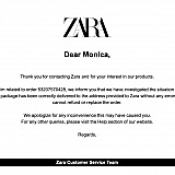 After they "looked into the issue" no one followed back up with me, and they would not give me the refund for the order they delivered to the wrong address. So I paid twice for the same order. I contacted my credit card company in regards to this matter, so they can stop one of the charges, and in doing this...zara blocked my credit card. THE WORST CUSTOMER SERVICE IN HISTORY...STRAIGHT UP TRASH! DO NOT ORDER FROM THEIR WEBSITE!