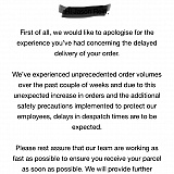 I get a response only AFTER I leave a review like this one on a business review site which assures me then my orders will be delivered within 30 days. That's 3 days, 10 days and now 30 days.