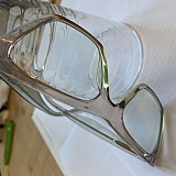 Therefore, we invite you to take a picture of the glasses with the lenses face down, but angled a little, above a white sheet of paper, while you shine the blue-light pen through the lenses, so we can see the blue light shining through the lenses onto the white sheet of paper.